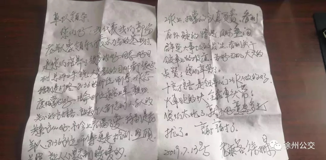 7月15日上午,一位老年乘客來(lái)到新巴士公司,送來(lái)一封表?yè)P(yáng)信,對(duì)69路駕駛員的服務(wù)稱(chēng)贊不已,“雖然今天天氣熱,但是我還是要親自送表?yè)P(yáng)信,這么優(yōu)秀的同志,應(yīng)該得到表?yè)P(yáng)。”老人這樣說(shuō)道。